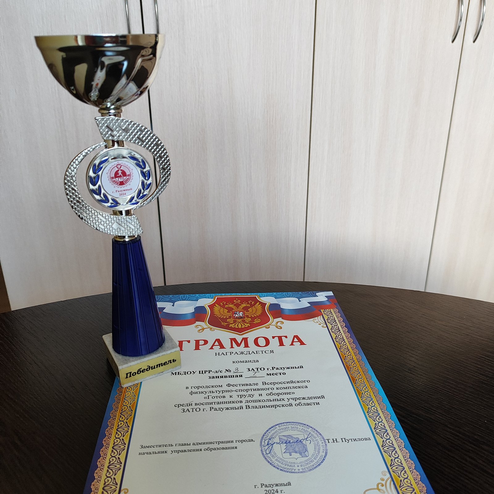 25 апреля состоялся городской фестиваль Всероссийского физкультурно-спортивного комплекса «Готов к труду и обороне» (ГТО) среди воспитанников детских садов города. В фестивале приняла участие команда детского сада «Рябинушка» в составе 10 детей, получивших высший бал по результатам испытаний во внутрисадовом этапе фестиваля ГТО. При выполнении испытаний наши ребята, под руководством инструктора по физической культуре Гусевой Галины Владимировны, проявили себя как настоящие спортсмены, с упорством выполняли задания, искренне переживали за товарищей. И заслужено заняли первое место!